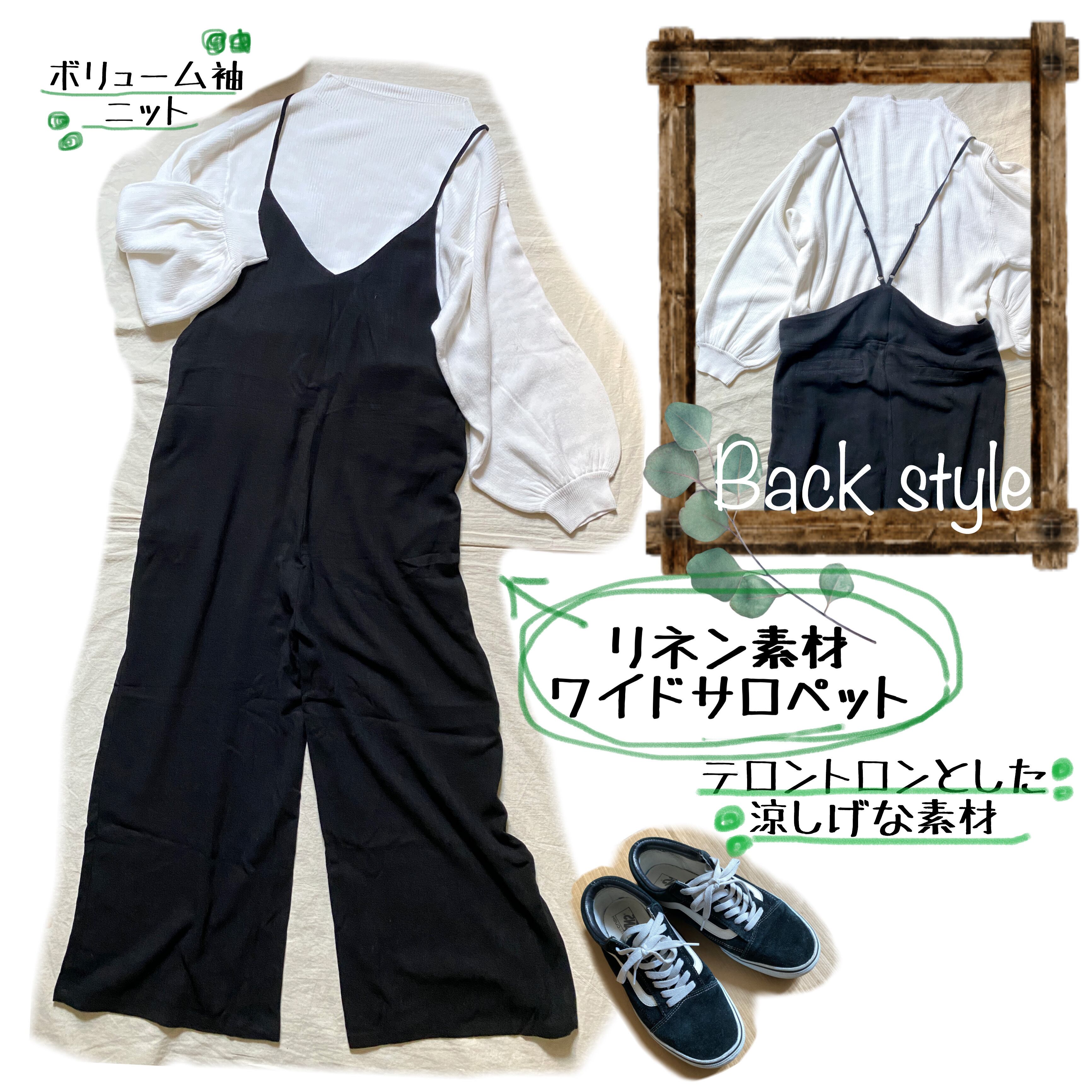 リネン素材ワイドサロペット